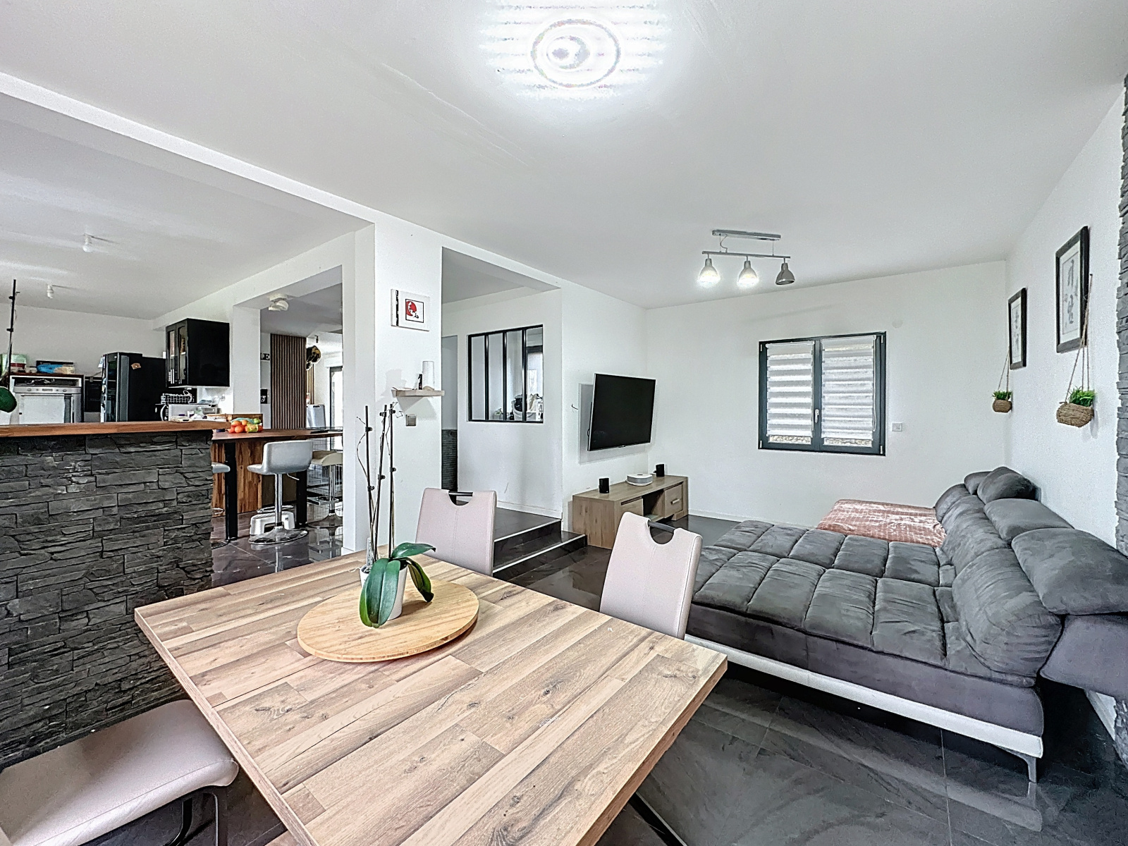 Cette maison individuelle d'une superficie de 159 mètres carrés habitable comprenant une belle entrée, un double séjour avec une cuisine ouverte aménagée et équipée.